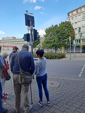 Wir sprachen auch über akustische Ampeln und Vibrationsampeln, die für Blinde eine wichtige Unterstützung darstellen.