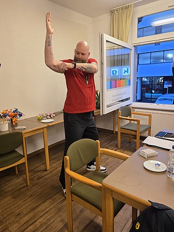 Das Seminar begann aktiv mit drei Übungen zur Überprüfung der eigenen Balance: